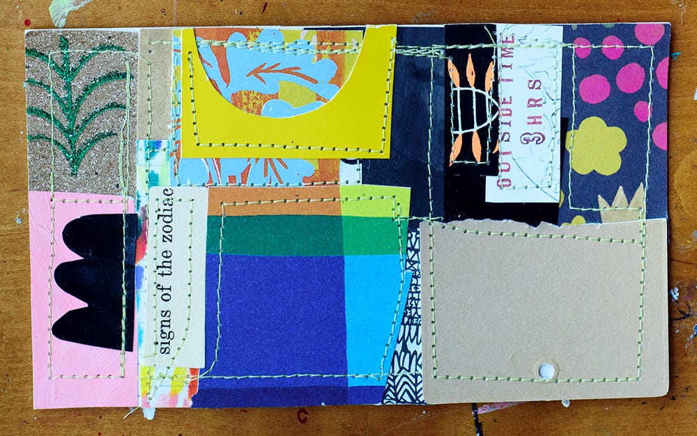 Each space is a tiny experiment. Rarely do I plan in advance or decide what goes where! A grid feels welcoming even for those who work in a loose, improvisational way. It gives you a map, some visual scaffolding, little invisible arrows pointing this way or that. Trail markers to deftly navigate the quandary of composition. Mine aren’t precise. Rarely measured. Usually guesstimates & approximations. It’s a peaceful, calming (and visually balanced) design.